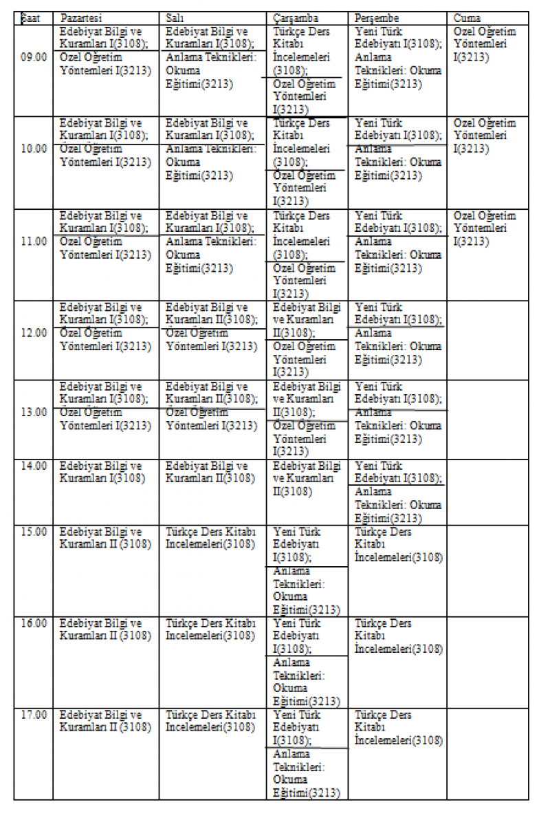 2017-2018 Yaz Öğretiminde Açılması Planlanan Derslerin Haftalık Programı ve Esaslar